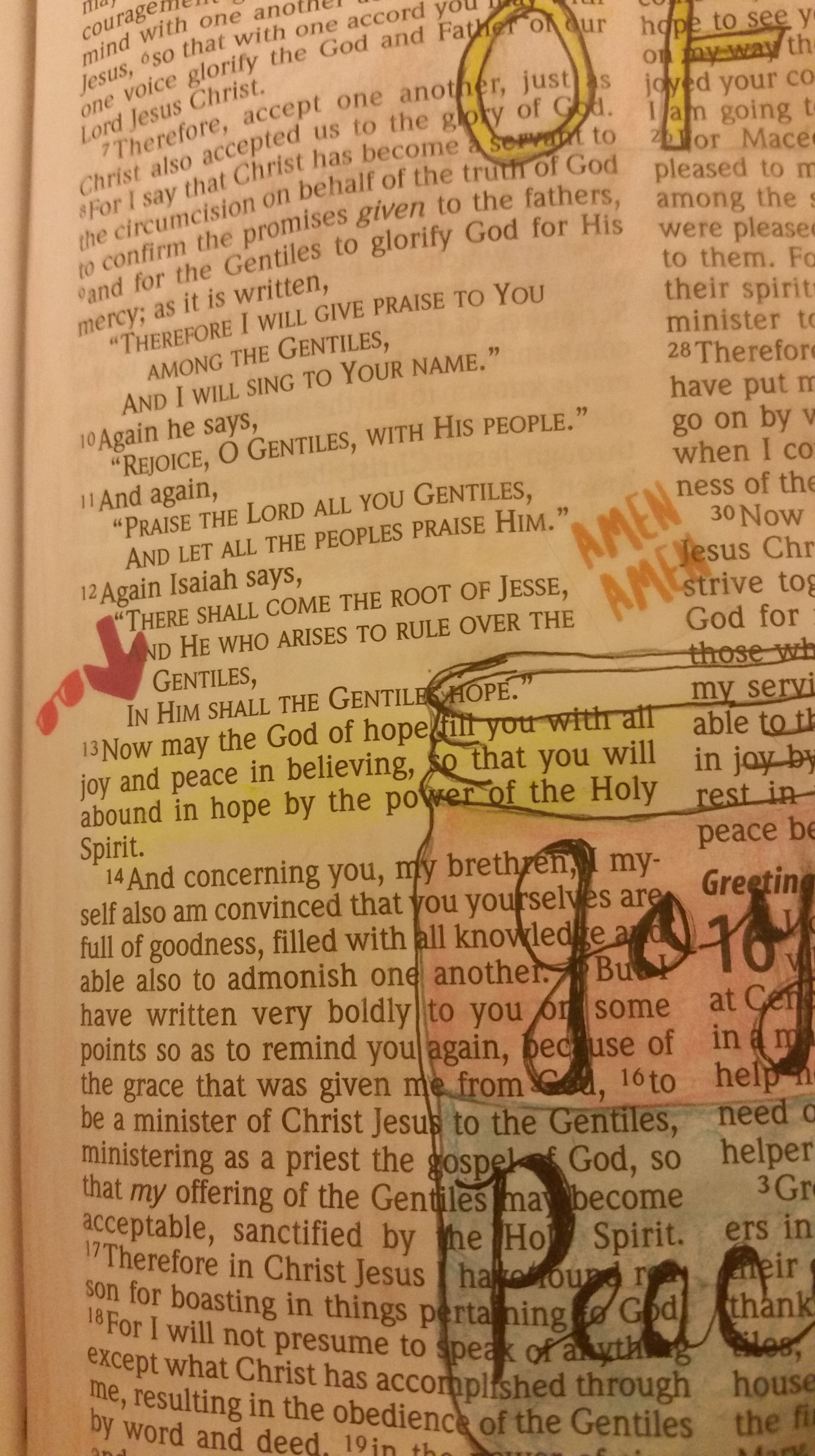 Today we are looking at Romans 15:13, “Now may the God of hope fill you with all joy and peace in believing, so that you will abound in hope by the power of the Holy Spirit.” (NASB) This verse is an encouragement for me today, especially. My family is going through a hard time right now, and the way things look on the surface, it’s difficult to have hope in the situation. But this verse tells me that God is “the God of hope”.