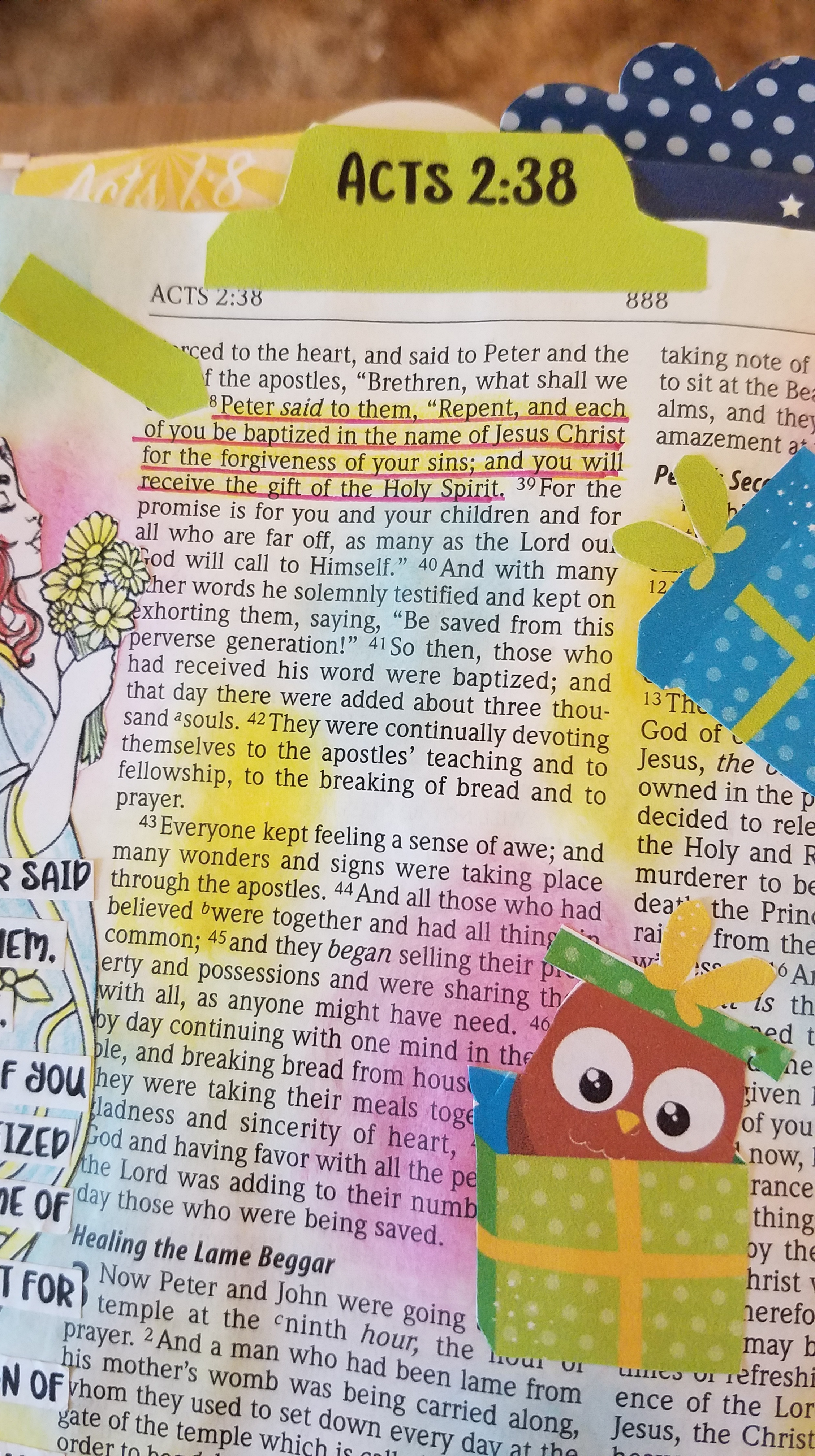 We are beginning a series on the Holy Spirit. Today’s Bible Journaling is from Acts 2:38, “Peter said to them, ‘Repent, and each of you be baptized in the name of Jesus Christ for the forgiveness of your sins; and you will receive the gift of the Holy Spirit.’” (NASB) Allow me to give a little background on what has happened.