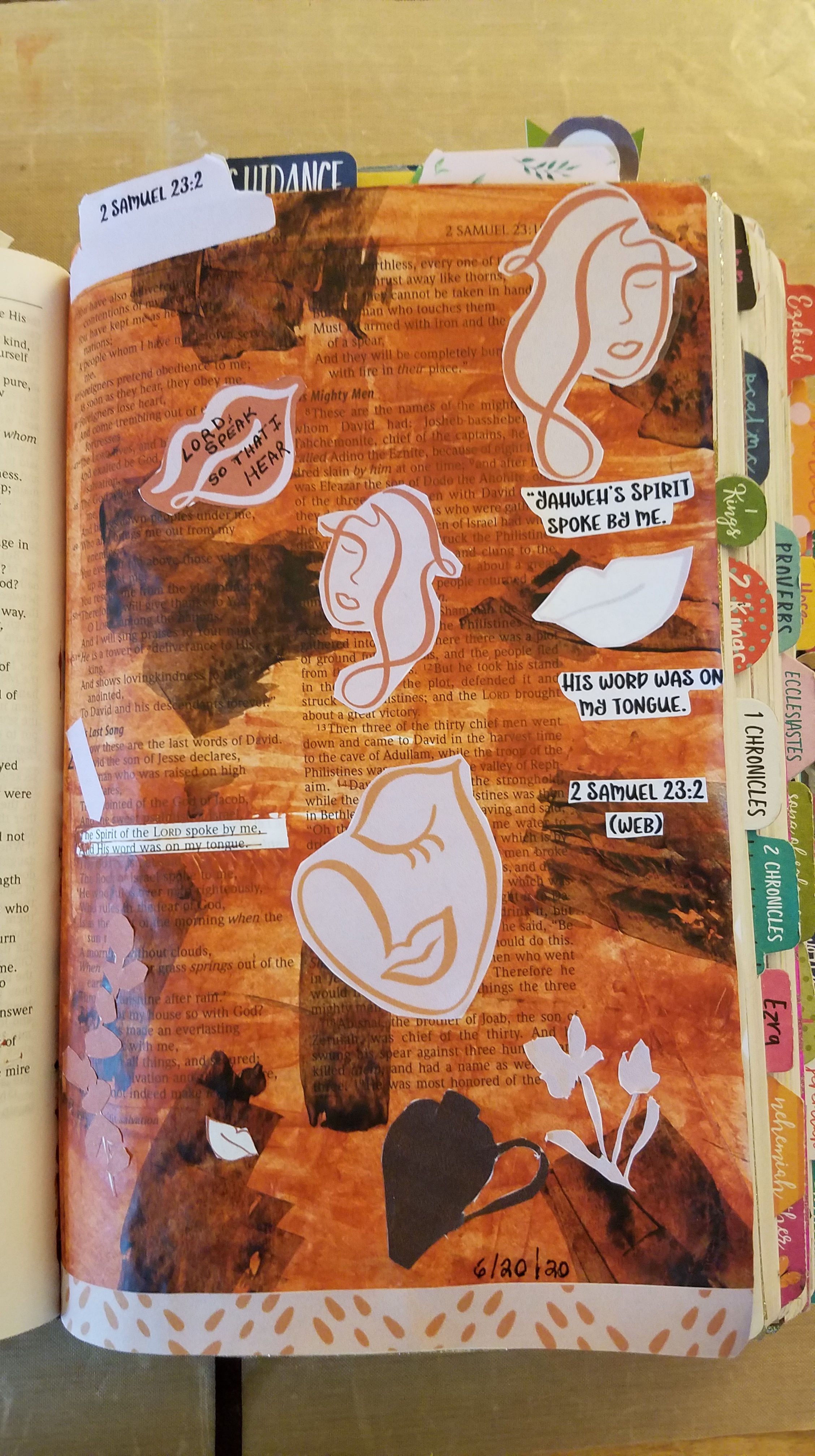 Since I’ve begun Bible Journaling, it has been much easier for me to discern His voice. Most of the time, it seems, His voice is very quiet. That still, small, voice is trying to get my attention in a world full of noise and chaos, especially in the current times in which we find ourselves.