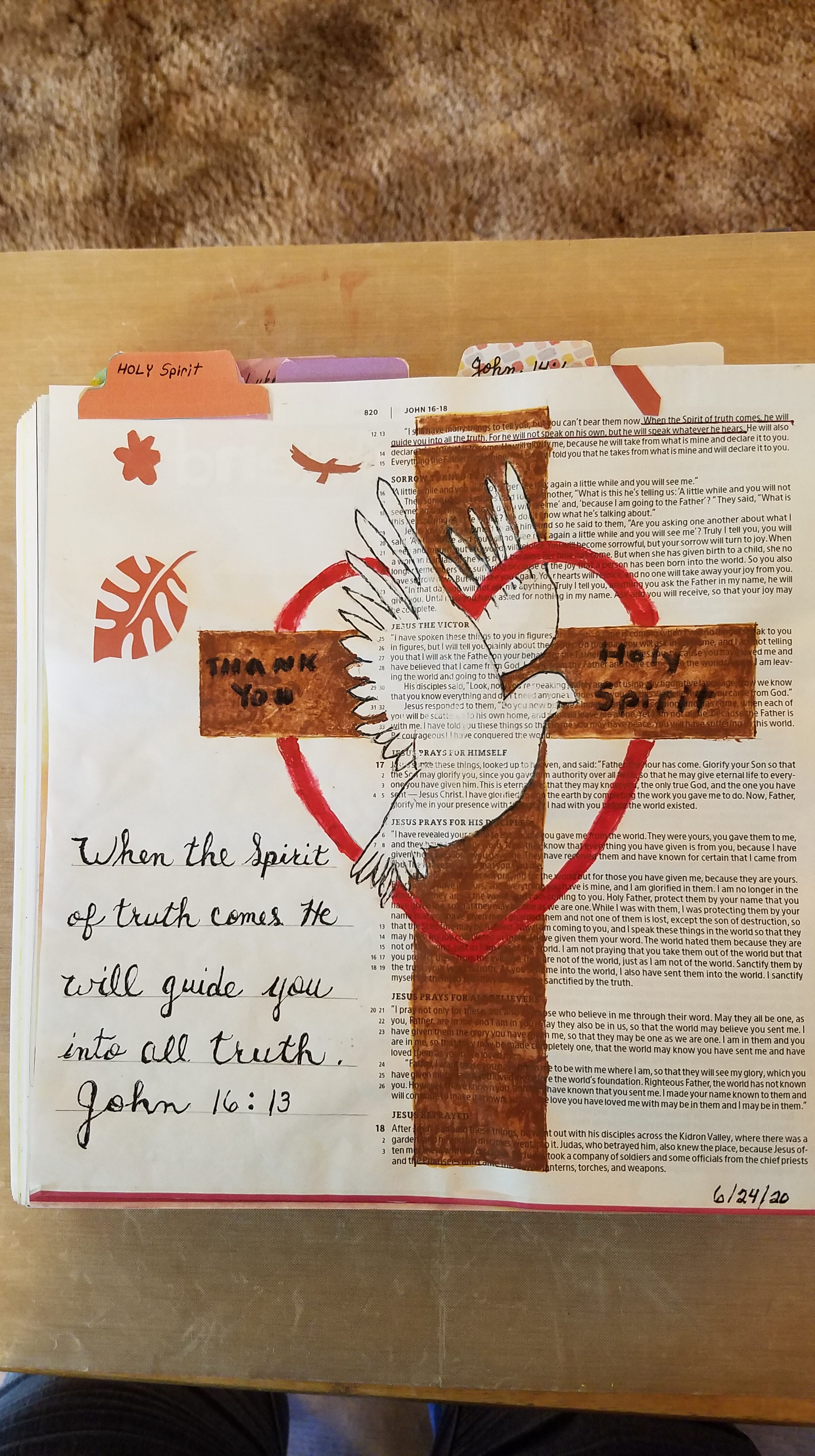 Today we learn from our Bible Journaling Scripture that the Holy Spirit is our guide. John 16:13 says, “When the Spirit of truth comes, He will guide you into all truth, for He will not speak on His own, but He will speak whatever He hears.” (CSB) As we study God’s Word, the Holy Spirit helps us in understanding what we are reading. He also gives direction to us as to what we are to do or in making decisions.