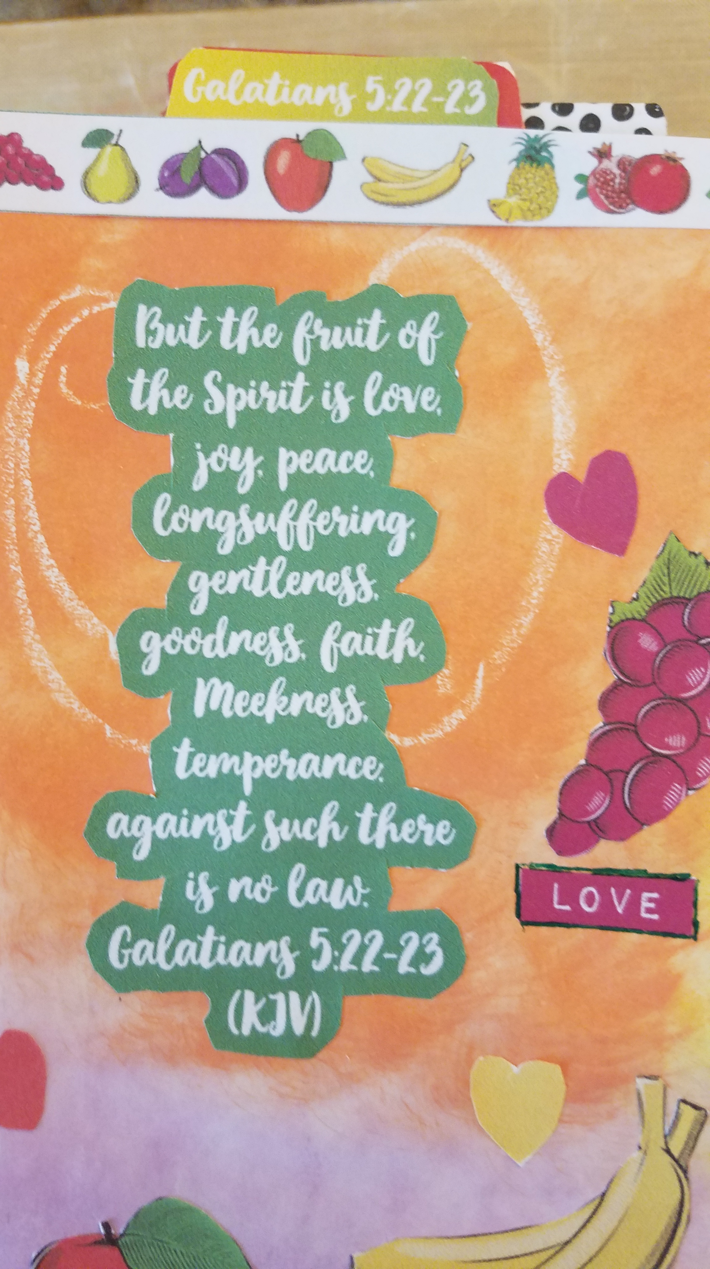 This month we are beginning a series on the Fruit of the Spirit. As we have been talking about the Holy Spirit, God’s Word tells us that when we accept Jesus as our Lord and Savior, we have the Holy Spirit in us. He helps us to grow and become more like Jesus and we begin to show that growth through what the Bible calls the Fruit of the Spirit. Galatians 5:22-23 says, “But the fruit of the Spirit is love, joy, peace, patience, kindness, goodness, faithfulness, gentleness, and self-control. The law is not against such things.” (CSB) The King James Version says, “But the fruit of the Spirit is love, joy, peace, longsuffering, gentleness, goodness, faith, meekness, temperance, against such there is no law.”