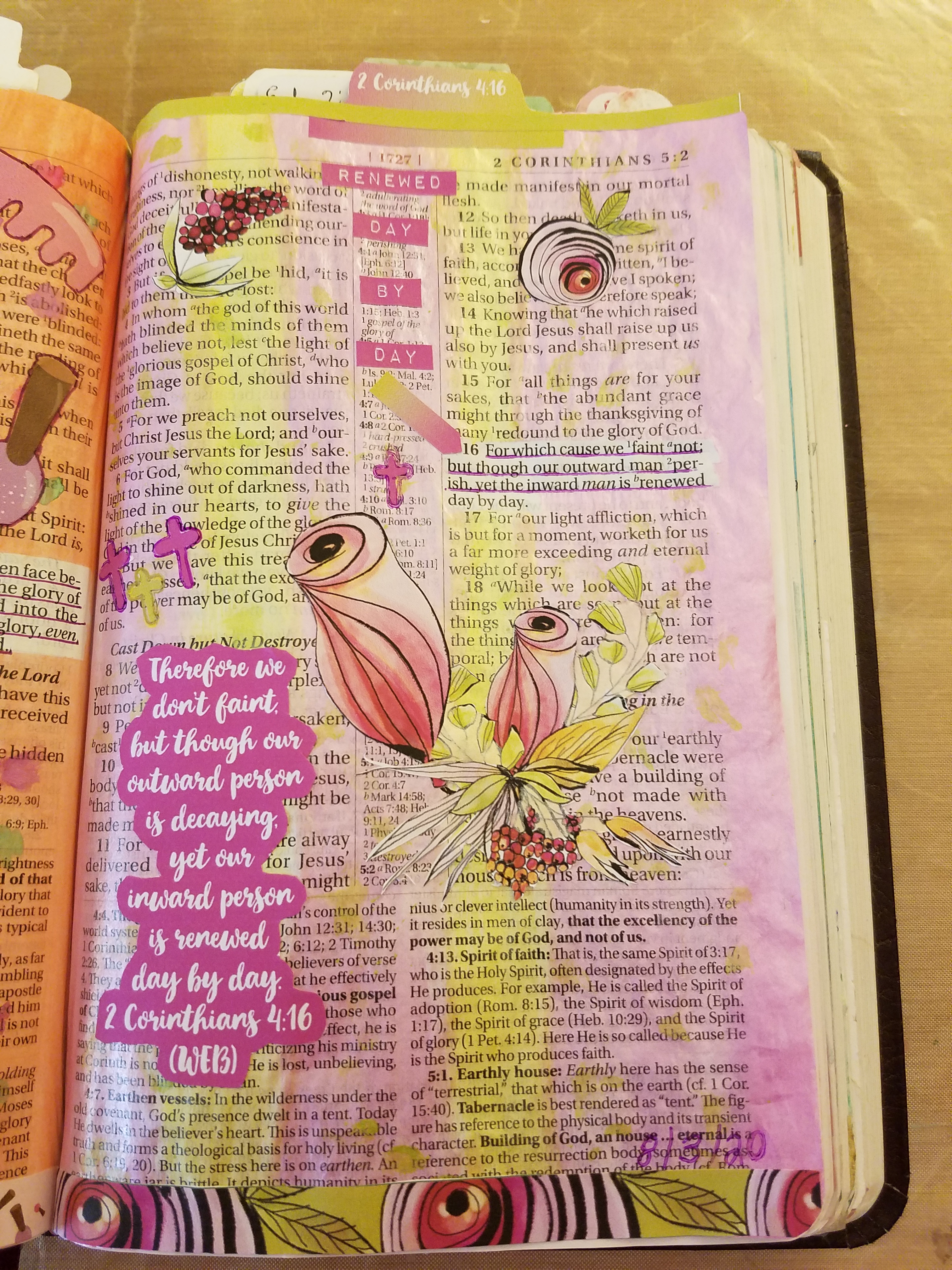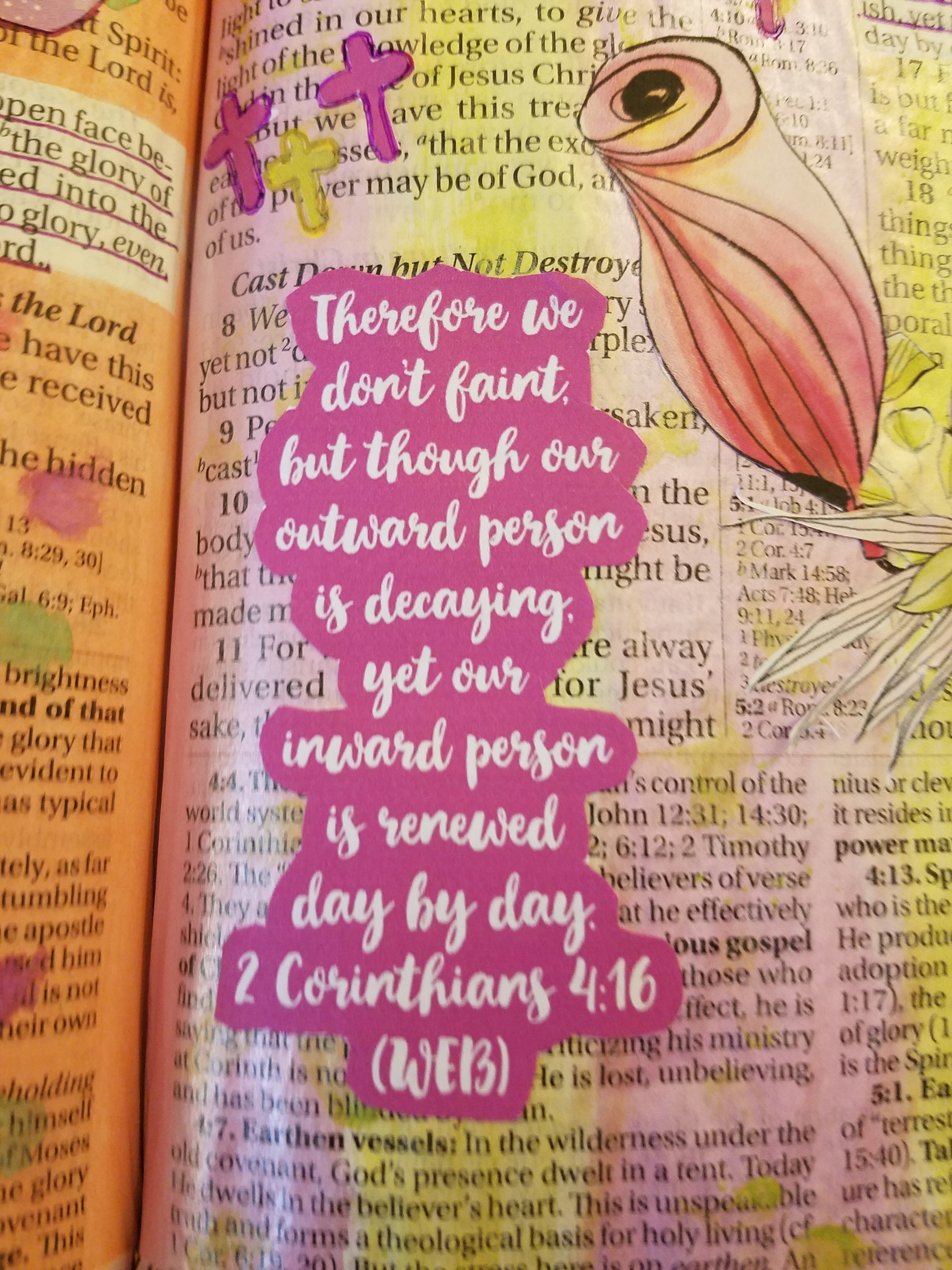 This month we are looking at Spiritual Discipline. I’m giving you fair warning, this is post is longer than my usual, so please stay with me to the end. A result of Spiritual Discipline is renewal. 2 Corinthians 4:16 says, “For which cause we faint not; but though our outward man perish, yet the inward man is renewed day by day.” (KJV) The Christian Standard Bible (CSB) puts it this way, “Therefore we do not give up. Even though our outer person is being destroyed, our inner person is being renewed day by day.”