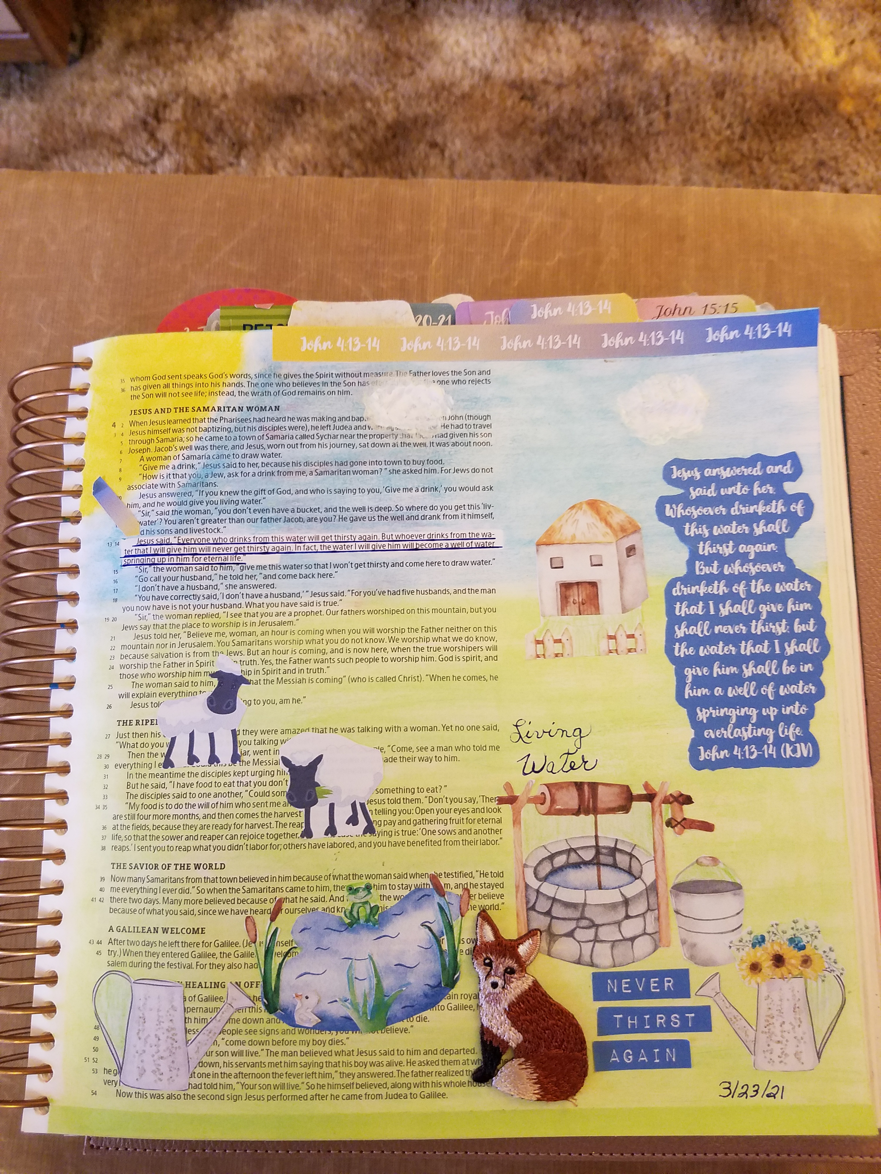 Before she met Jesus, she was a woman with no hope. She was living a life of sin, looking for something or someone to fill the emptiness in her heart. But when she puts her life in Jesus’ hands, she has a whole new outlook on life. Jesus changed her heart and it changed her so much that she went immediately and witnessed to others in the town, and they came and were changed. They saw the change in her and wanted the same thing she had found. Jesus gave them that Spiritual Water, that Living Water. Only that Living Water can take away our Spiritual thirst, can bring change and hope, can make us whole, and bring everlasting life. When we surrender our lives to Him, He gives us Living Water!