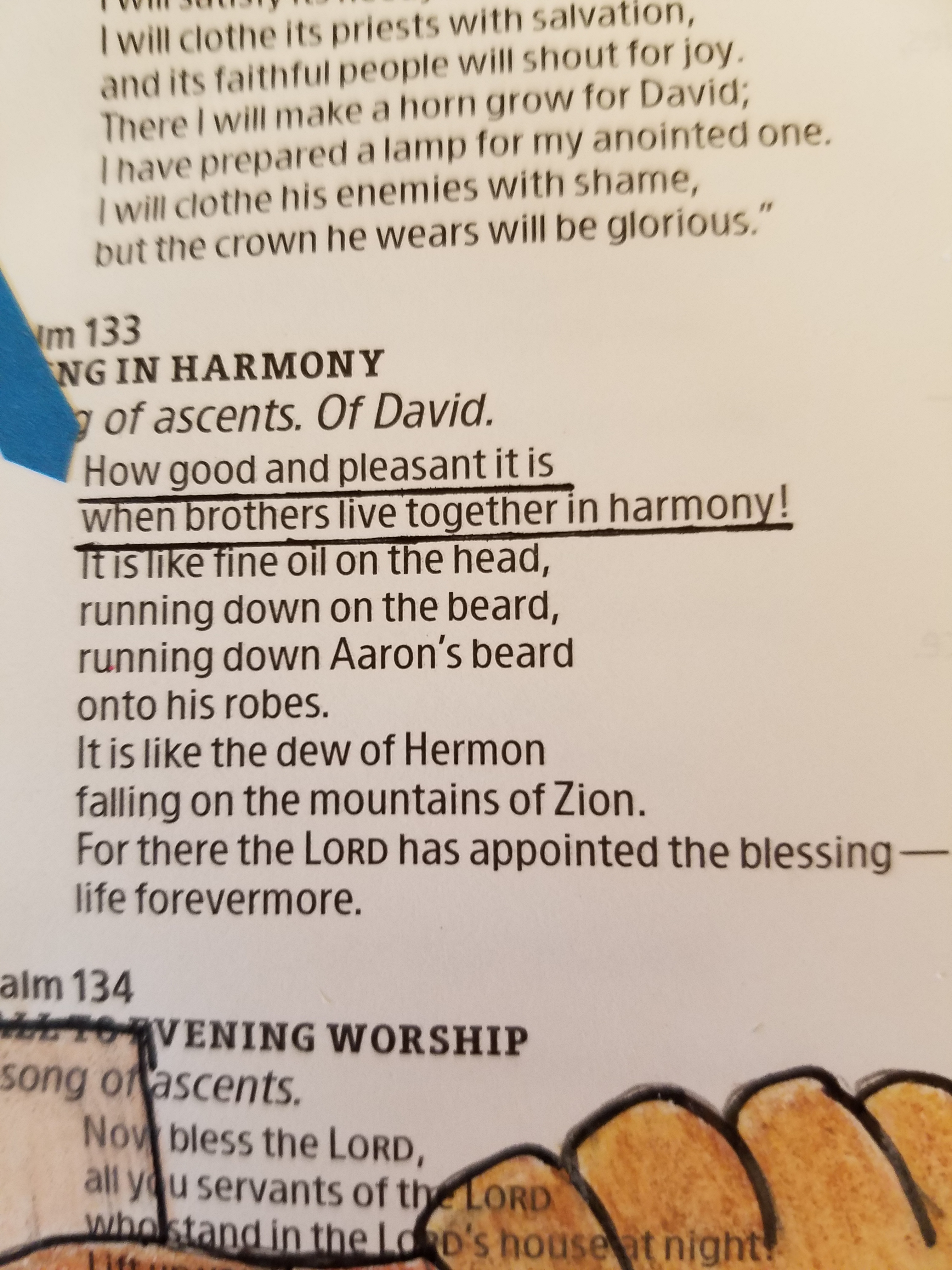 King David writes in today’s Bible Journaling verse, “How good and pleasant it is when brothers live together in harmony!” (Psalm 133:1 CSB) As Christians, we are called to a life of peace, harmony, and unity. Jesus is that source of peace. In John 16:33, Jesus told His disciples, “I have told you these things so that in Me you may have peace. You will have suffering in this world. Be courageous! I have conquered the world.” (CSB) Did you catch what Jesus said? He said that IN HIM we can have peace! That means that once we accept Jesus as our Lord and Savior, we can find peace in Him. He gives us a life of peace. Then we are to exhibit that peace and harmony to those around us. We are to actively work on living at peace or be in unity with others. Sometimes this can be difficult, but we are to try our best to be united, as Believers, neighbors, family members, friends, and even enemies.