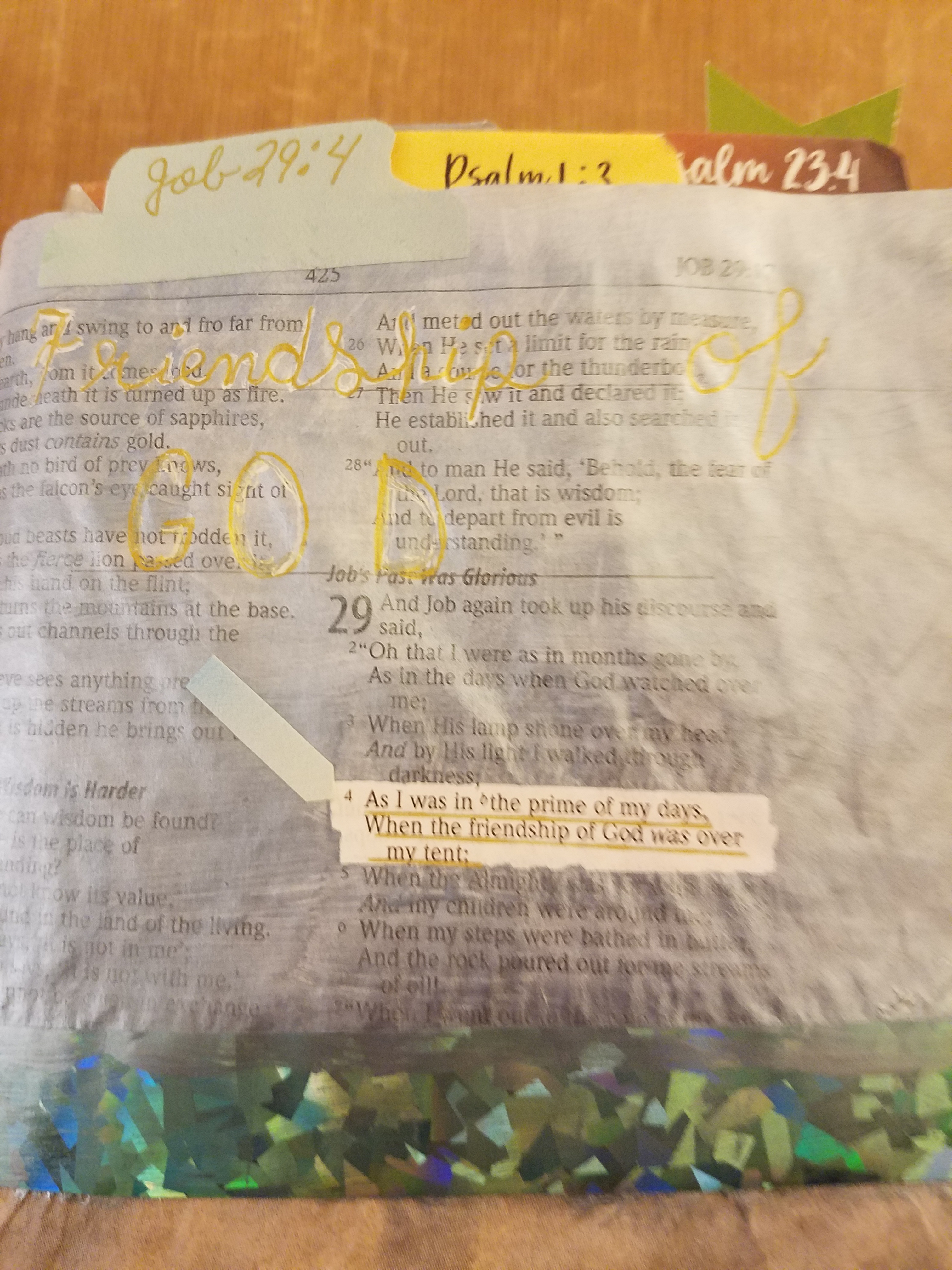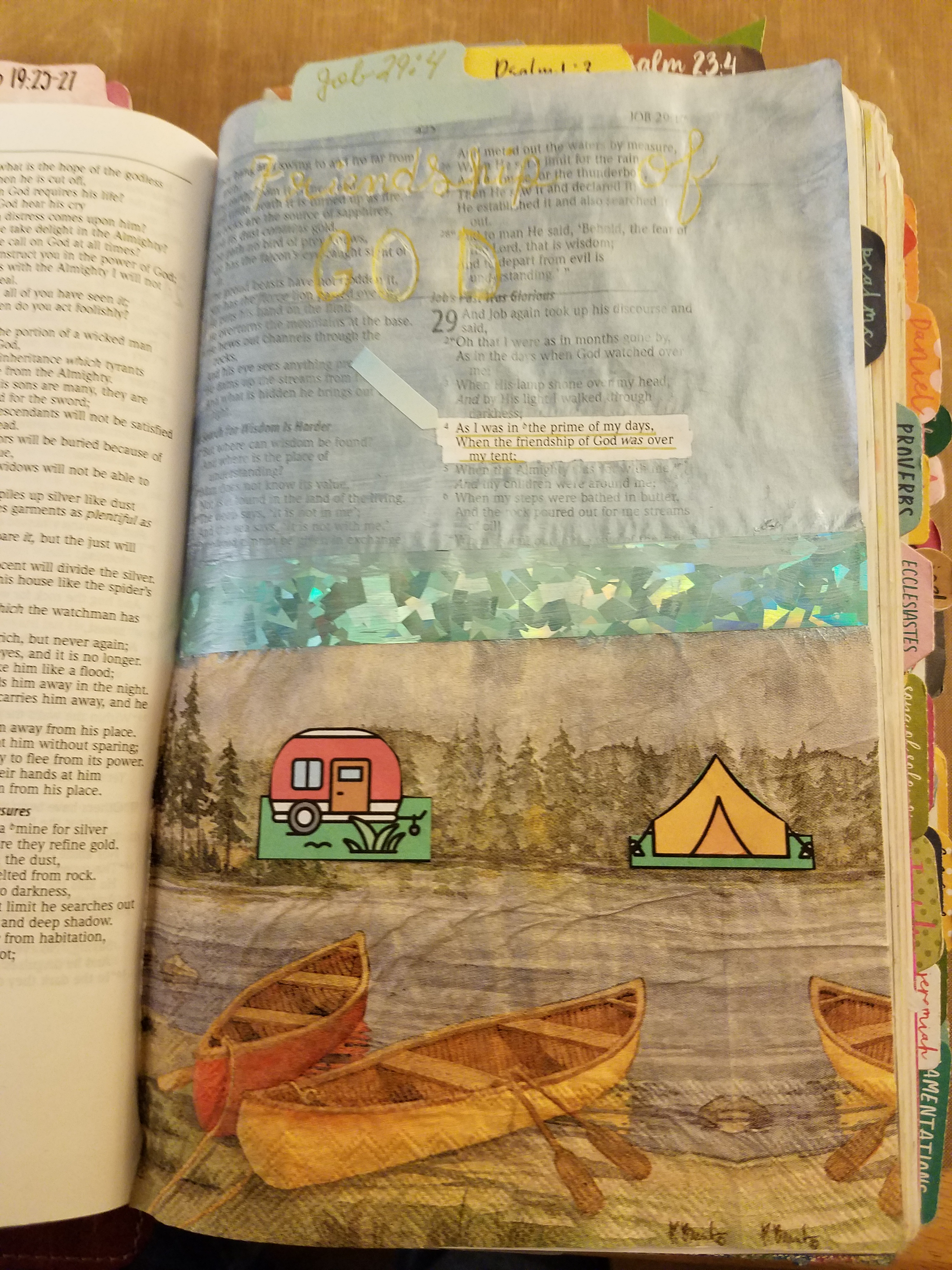 Today’s Bible Journaling verse comes from Job 29:4, “As I was in the prime of my days, When the friendship of God was over my tent;” (NASB 1995) Job was thinking about how God’s friendship had covered him. Job knew that God was his friend! God is our Friend also! Isn’t that an awesome thought? He’s the best Friend we could ever have! Today we are going to look at ways that God shows that He is our Friend.