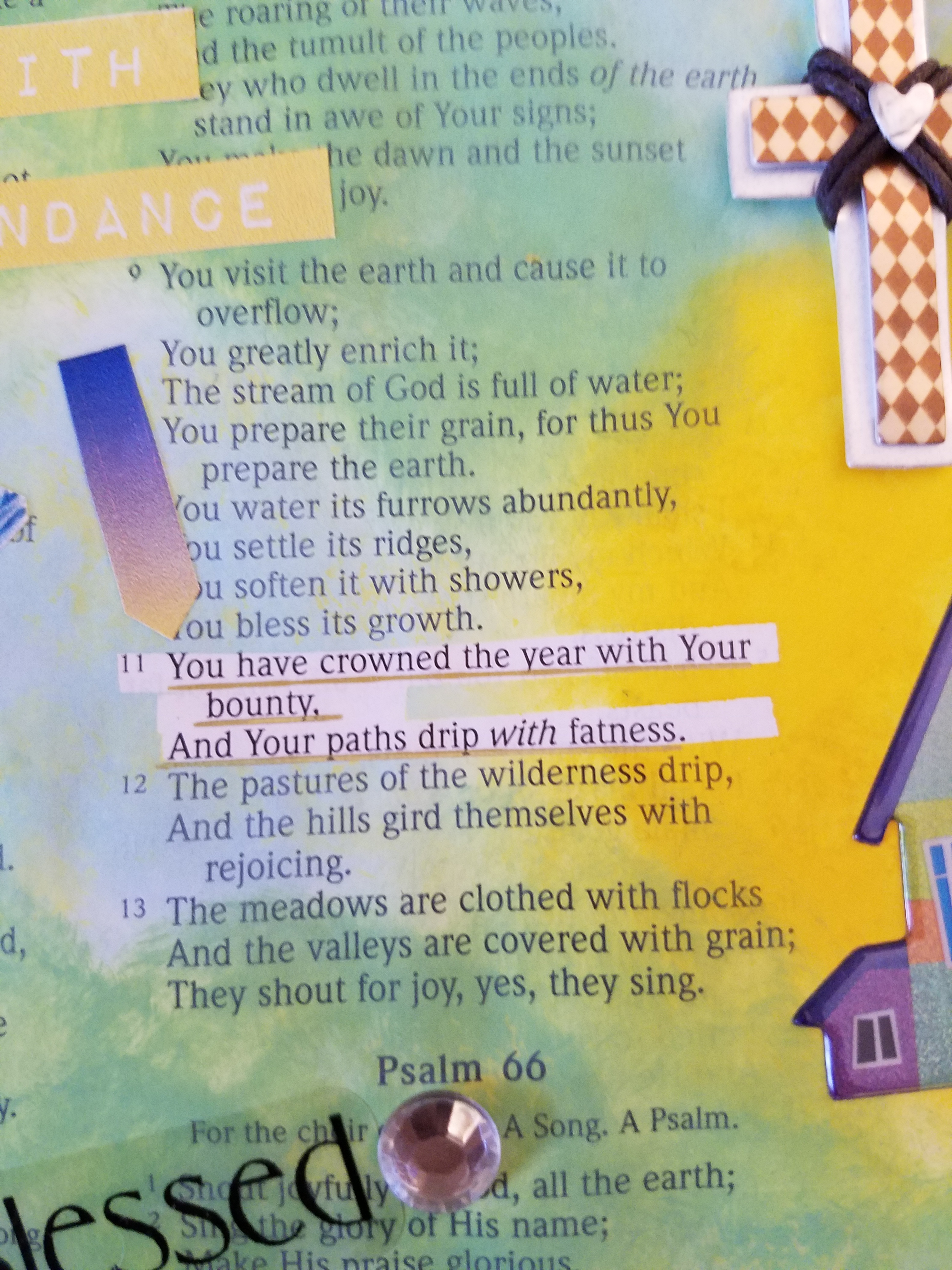 As we continue looking at our “Plus One” blessings, today’s Scripture reminds us that God blesses us abundantly, even to overflowing! “You have crowned the year with Your bounty, And Your paths drip with fatness.” (Psalm 65:11 NASB 1995) In the World English Bible (WEB) it says, “You crown the year with your bounty. Your carts overflow with abundance.” I like the way the WEB uses the phrase “Your carts overflow with abundance.” It gives the image of a bountiful harvest, so full and so huge that the cart of produce is overflowing! God’s blessings are overwhelming!