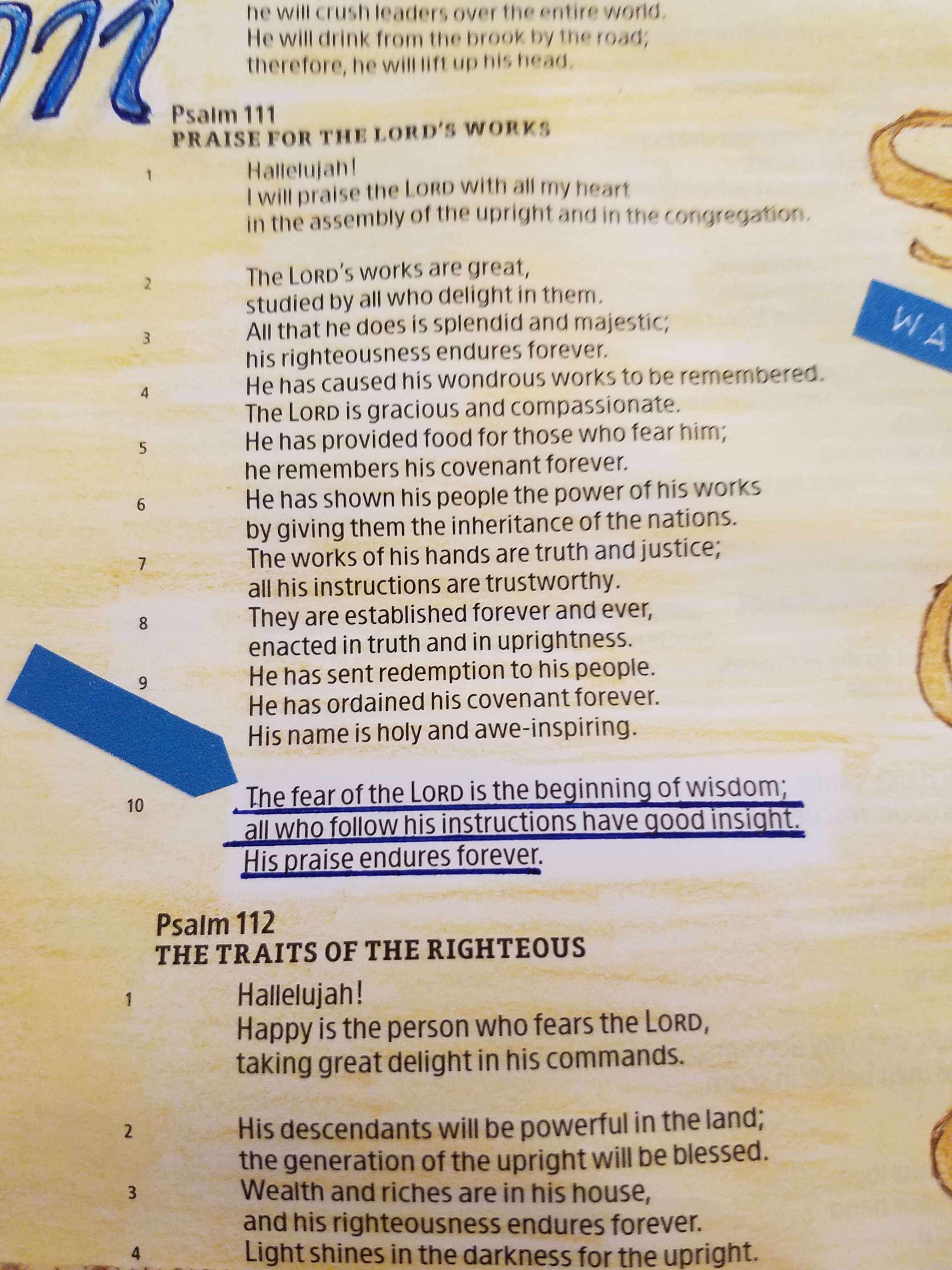 Wisdom requires a certain amount of discernment on our part, and we need to know from where that wisdom comes. Our verse today tells us, “The fear of the Lord is the beginning of wisdom; all who follow his instructions have good insight. His praise endures forever.” (Psalm 111:10 CSB)