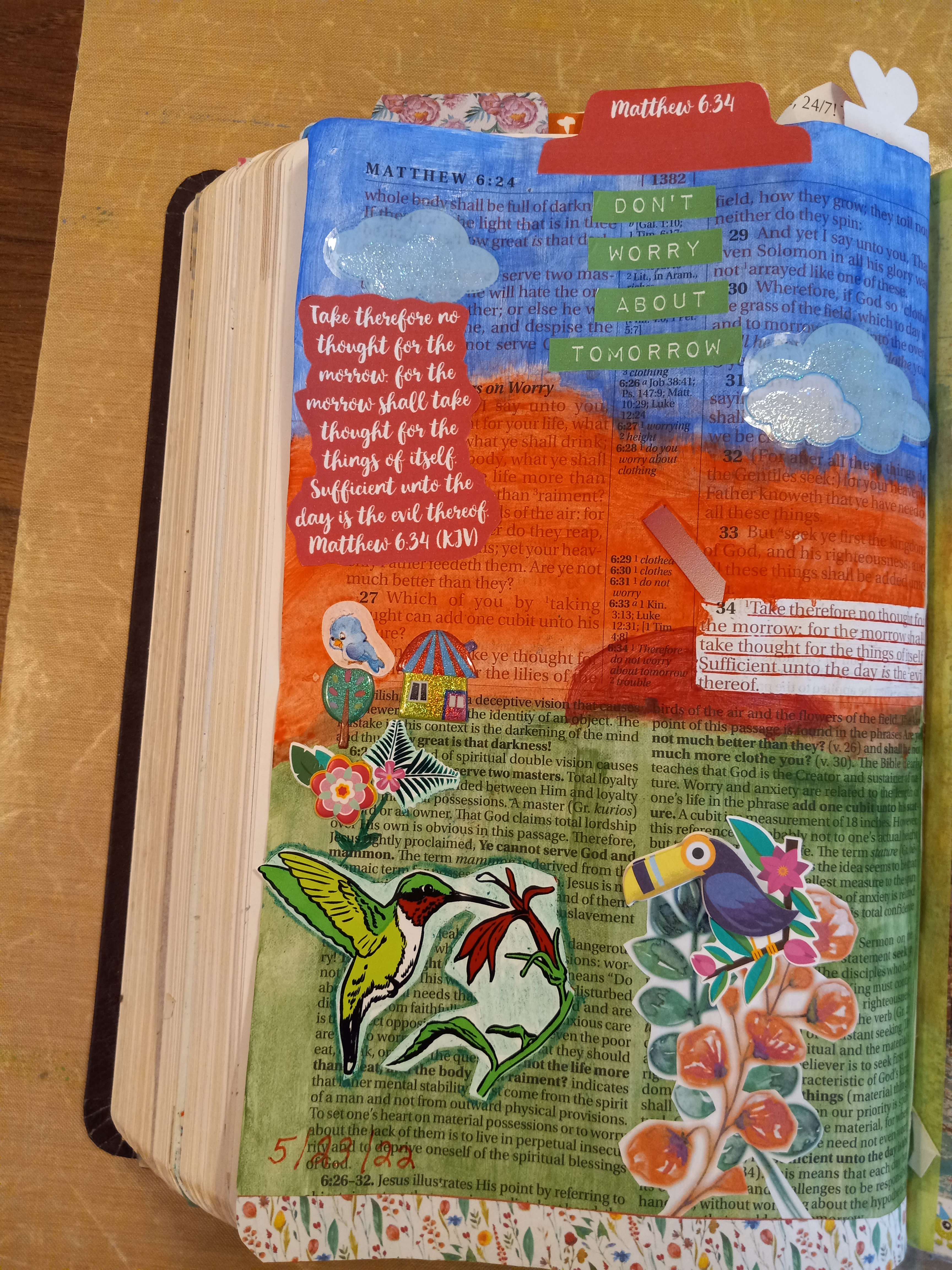 Some may say, “But shouldn’t we make plans for our future?” Sure, but not to the point that we are nervous wrecks when our plans don’t pan out. Sometimes what we plan isn’t in the plan God has for us. That has happened to me. My first husband and I moved from Ohio to Montana, and it was a stressful move. I very emphatically stated, “We are never moving cross-country again!” I joke now that when I said that God laughed and said, “Oh yeah? Watch this!” and He moved us from Montana to Illinois! Since then, I have moved from Illinois to Arizona and now to Missouri! God has a great sense of humor, but He also has our lives in His hands, and we can trust that He knows what He is doing and that He will take care of us.