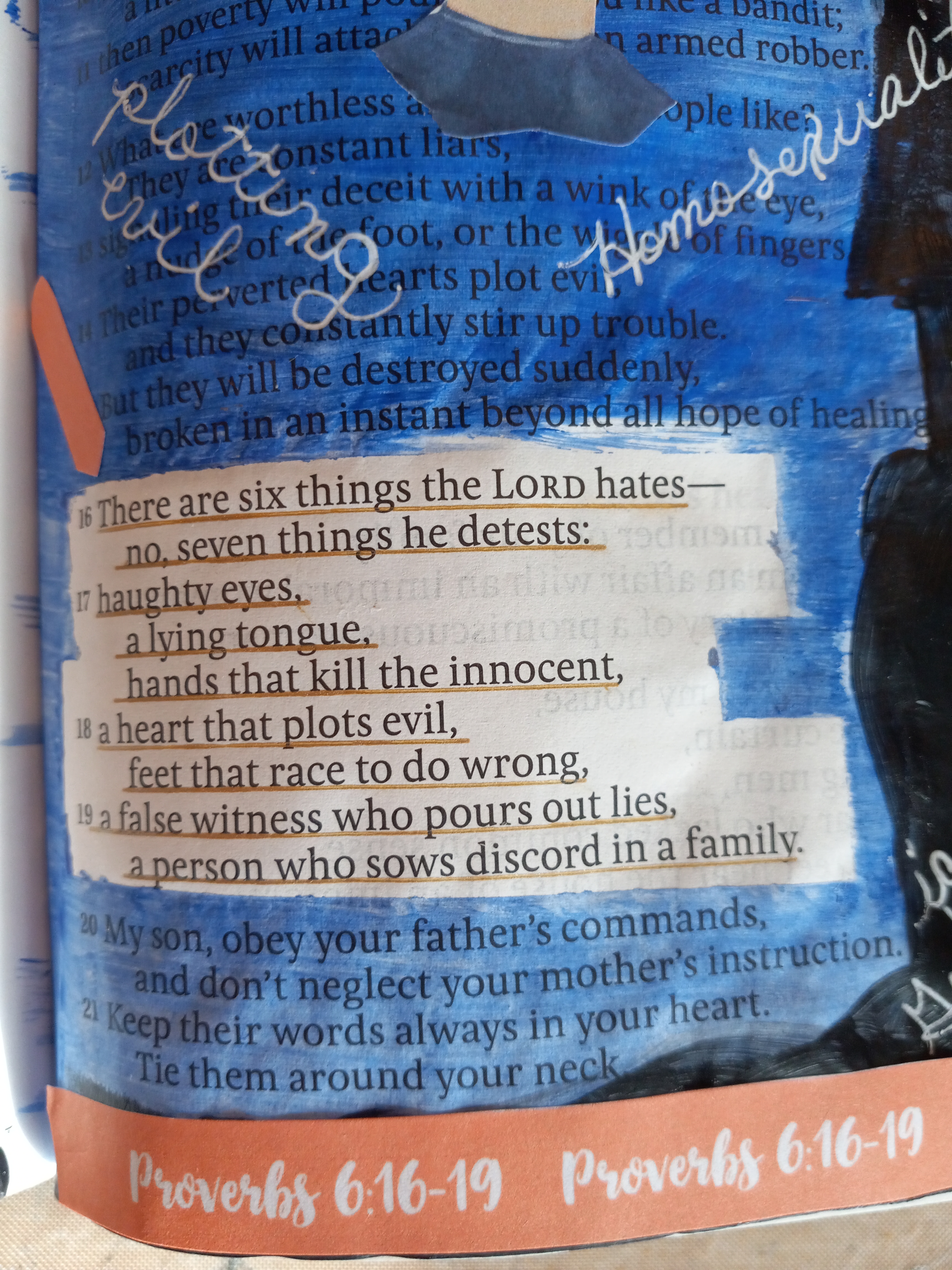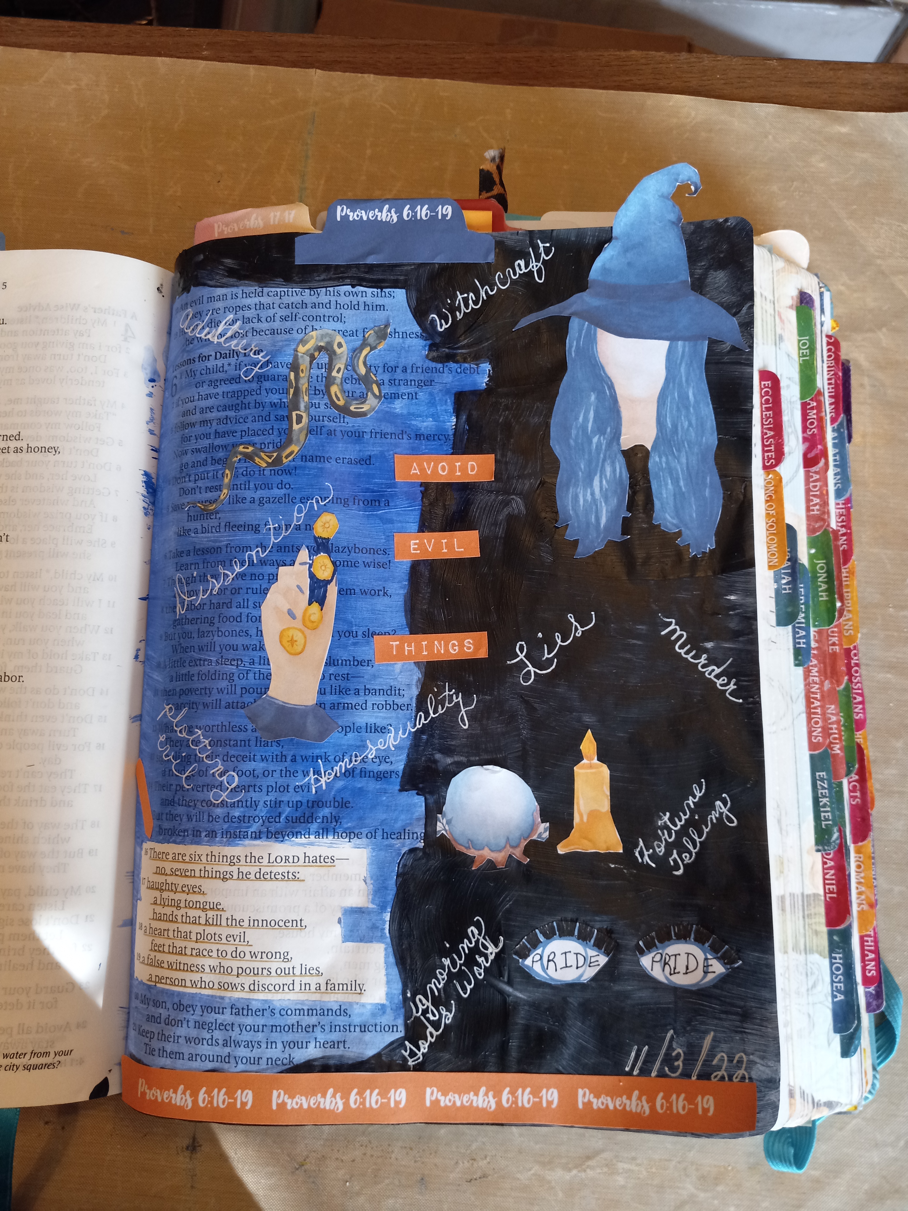 As I was working on my Bible Journaling, I made a mess on my hands and a little on my shirt, and the Holy Spirit whispered to me, “Sin is messy.” That is exactly what I had done, made a mess, and then I needed to clean it up. Sin is messy too.
