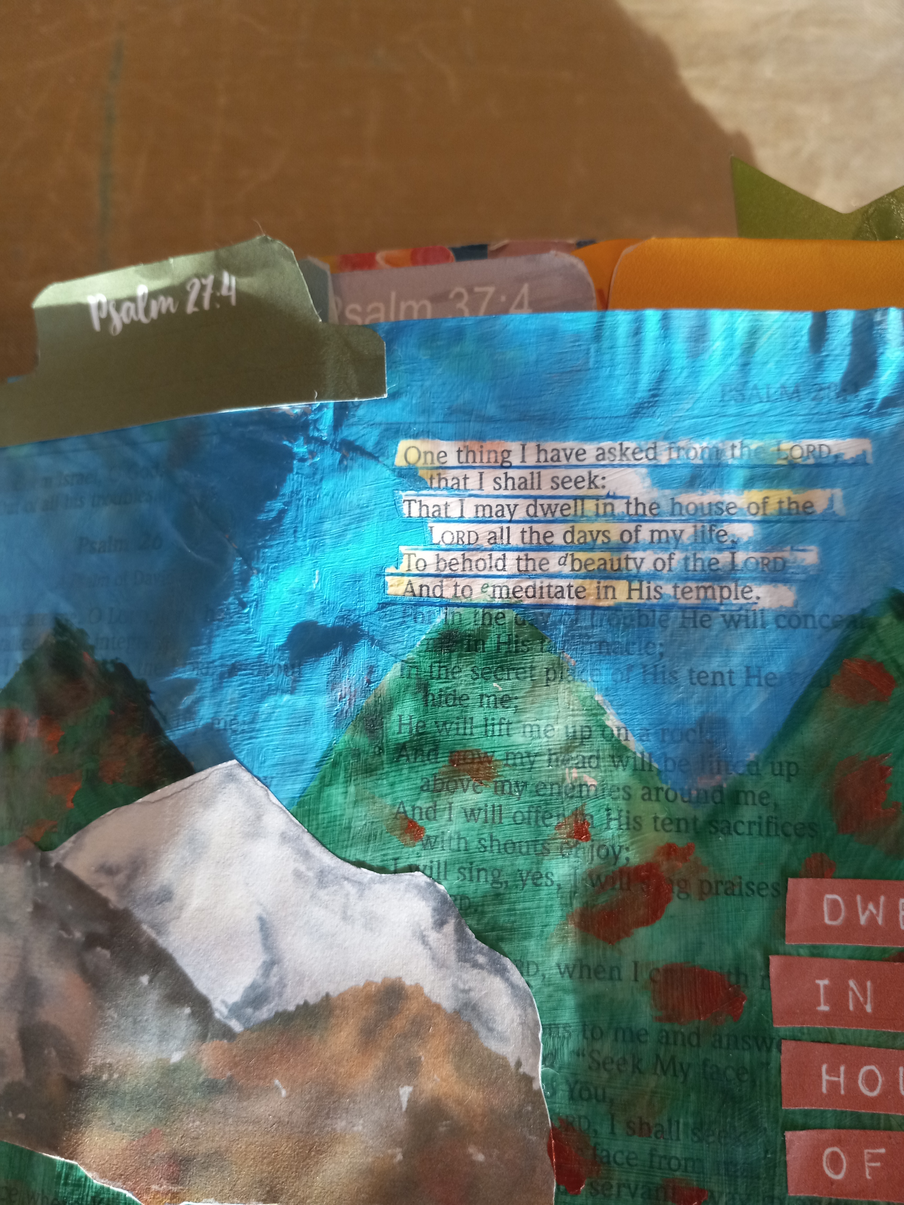 Our Bible Journaling verse today is Psalm 27:4, “One thing I have asked from the Lord, that I shall seek: That I may dwell in the house of the Lord all the days of my life, To behold the beauty of the Lord And to meditate in His temple.” (NASB 1995) This was the one thing that was the most important in King David’s life. He wanted to be as close to God as he could get. What is the one thing that is the most important in our lives? Some of us may have so much going on that we feel like we’re going in 40 different directions and there is nothing but chaos in our lives.