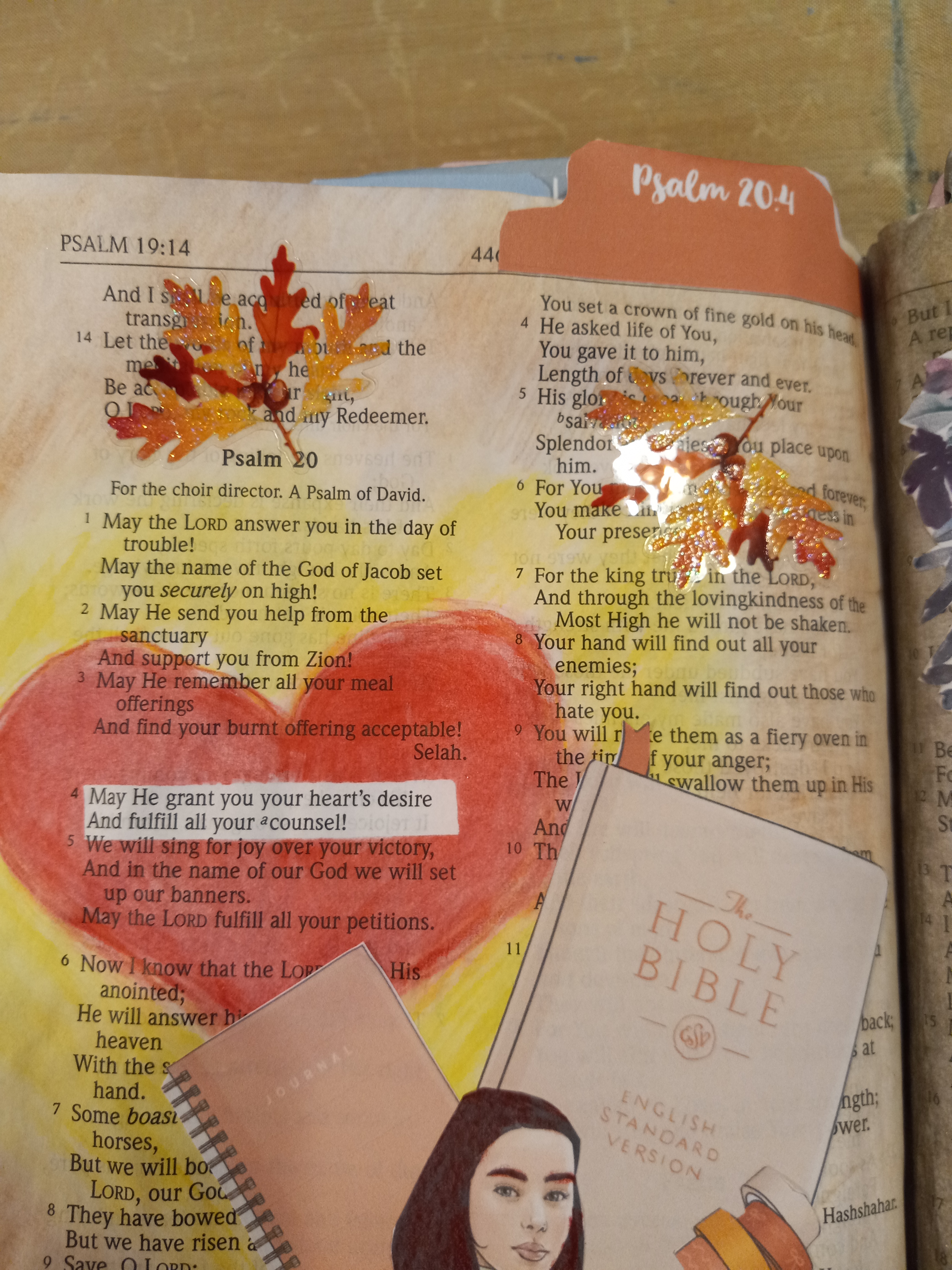 Sometimes, I think we look at a verse like Psalm 20:4 and think that it means that no matter what we ask for, God will grant it. But that isn’t what the Bible tells us. “The mind of man plans his way, But the Lord directs his steps.” (Proverbs 16:9 NASB 1995) What we may be asking for may not be good for us, or the timing may be wrong. God sees the whole plan while we see only a small part of it. When we seek God’s will for our lives and desire what He desires for us, He will lead us and make a way for that desire to be fulfilled. Remember Jeremiah 29:11? God has GOOD plans for us…plans not to harm us but to give us a future and hope.