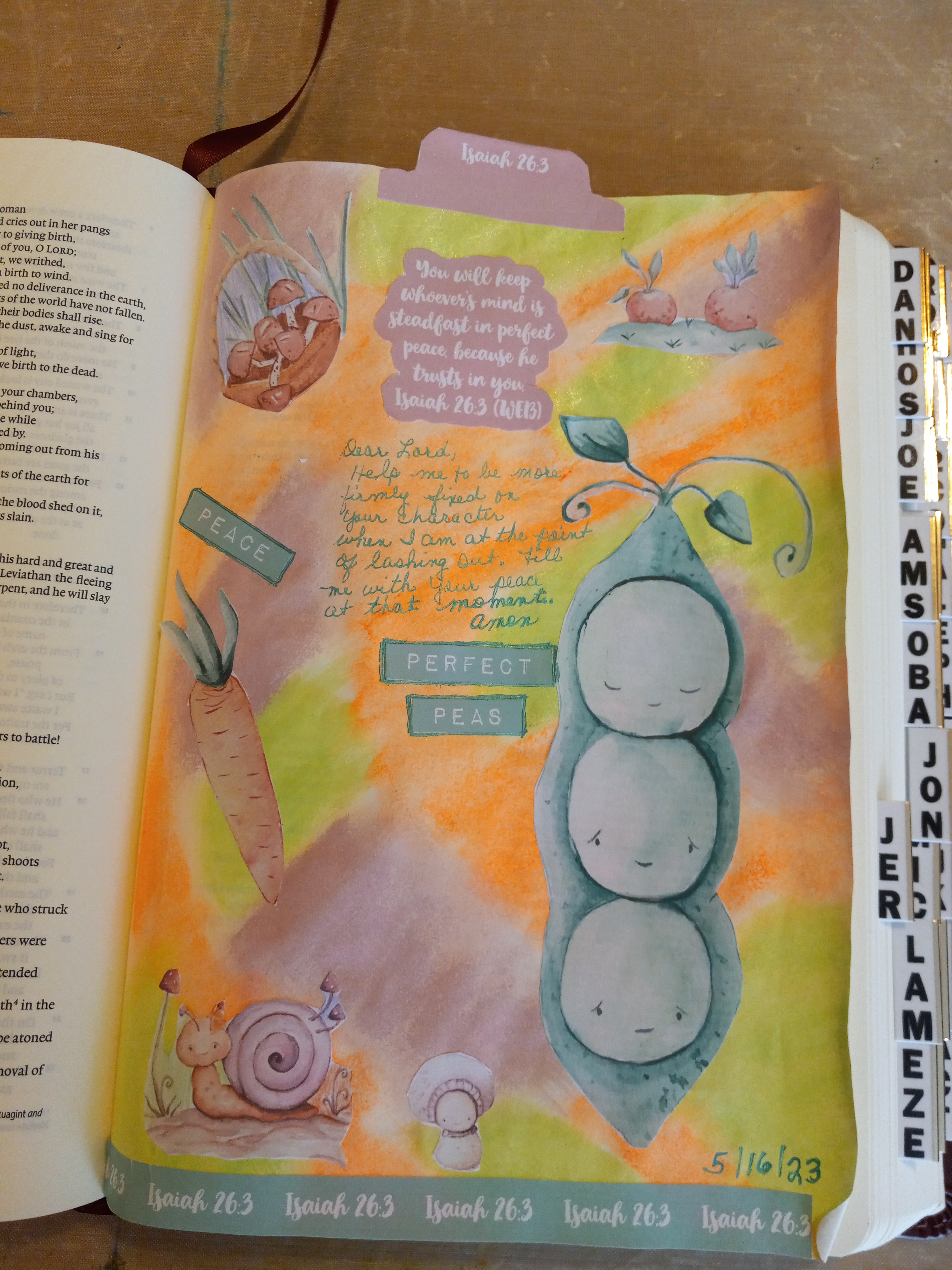 We all want a life full of peace, but it requires something from us. Our Bible Journaling Scripture says, “You keep him in perfect peace whose mind is stayed on you, because he trusts in you.” (Isaiah 26:3 ESV) We must be focused…our minds must be firmly fixed on God.