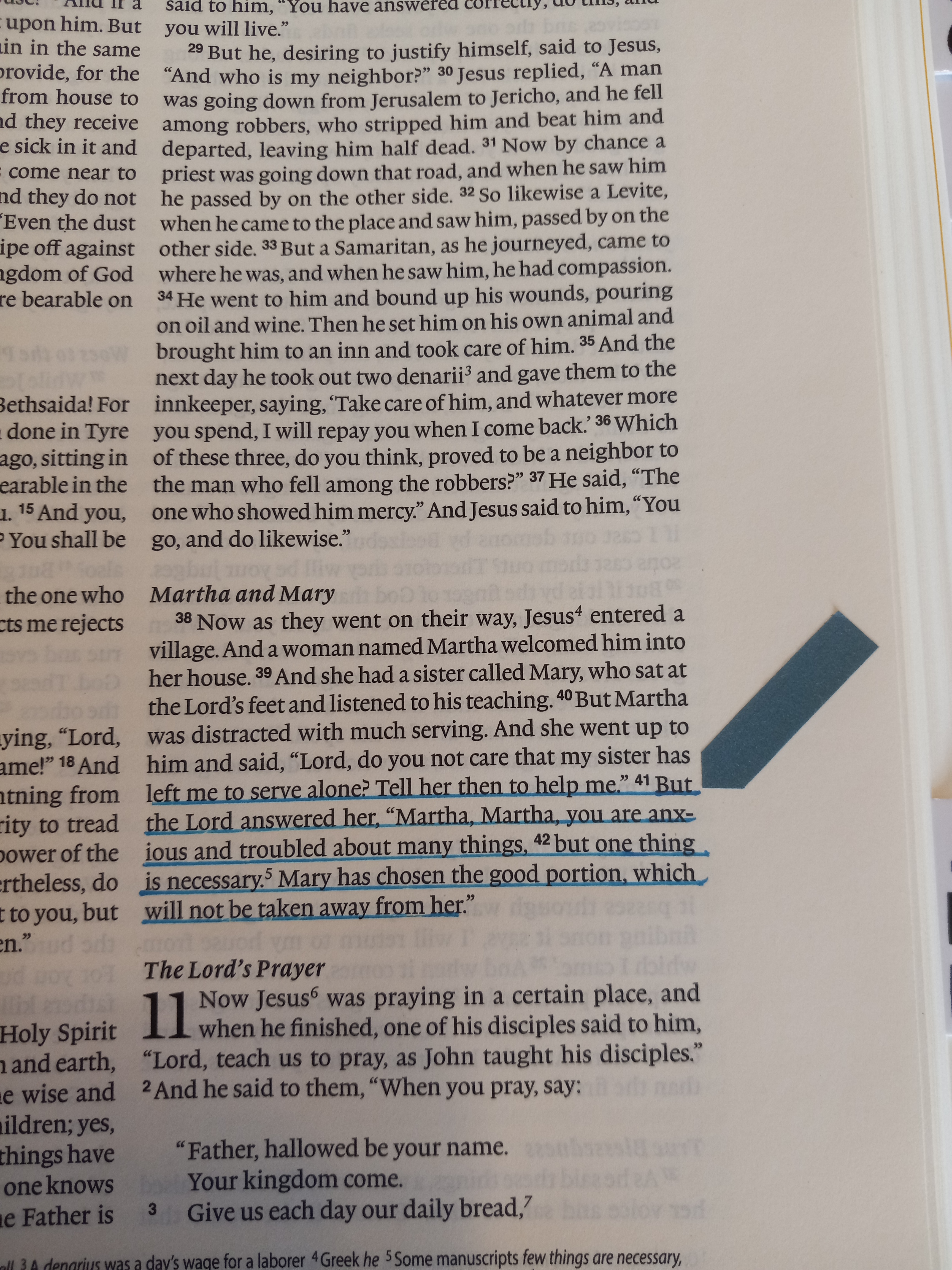 The New King James Version says, “And she had a sister called Mary, who also sat at Jesus’ feet and heard His word.” (Luke 10:39 NKJV) The Enduring Word website states, “Martha didn’t get the help she wanted from her sister Mary. It wasn’t that Mary was lazy – she prepared as well as Martha, but Mary also sat at Jesus’ feet.” Both commentaries say that it wasn’t that Mary left Martha to do all the work, which is what I’ve always heard in every sermon I’ve heard preached, but that Mary did her work, and then she turned her attention to what Jesus was teaching, while Martha got so caught up in the preparations that she eventually got herself frustrated and lost the whole purpose of Jesus’ visit.