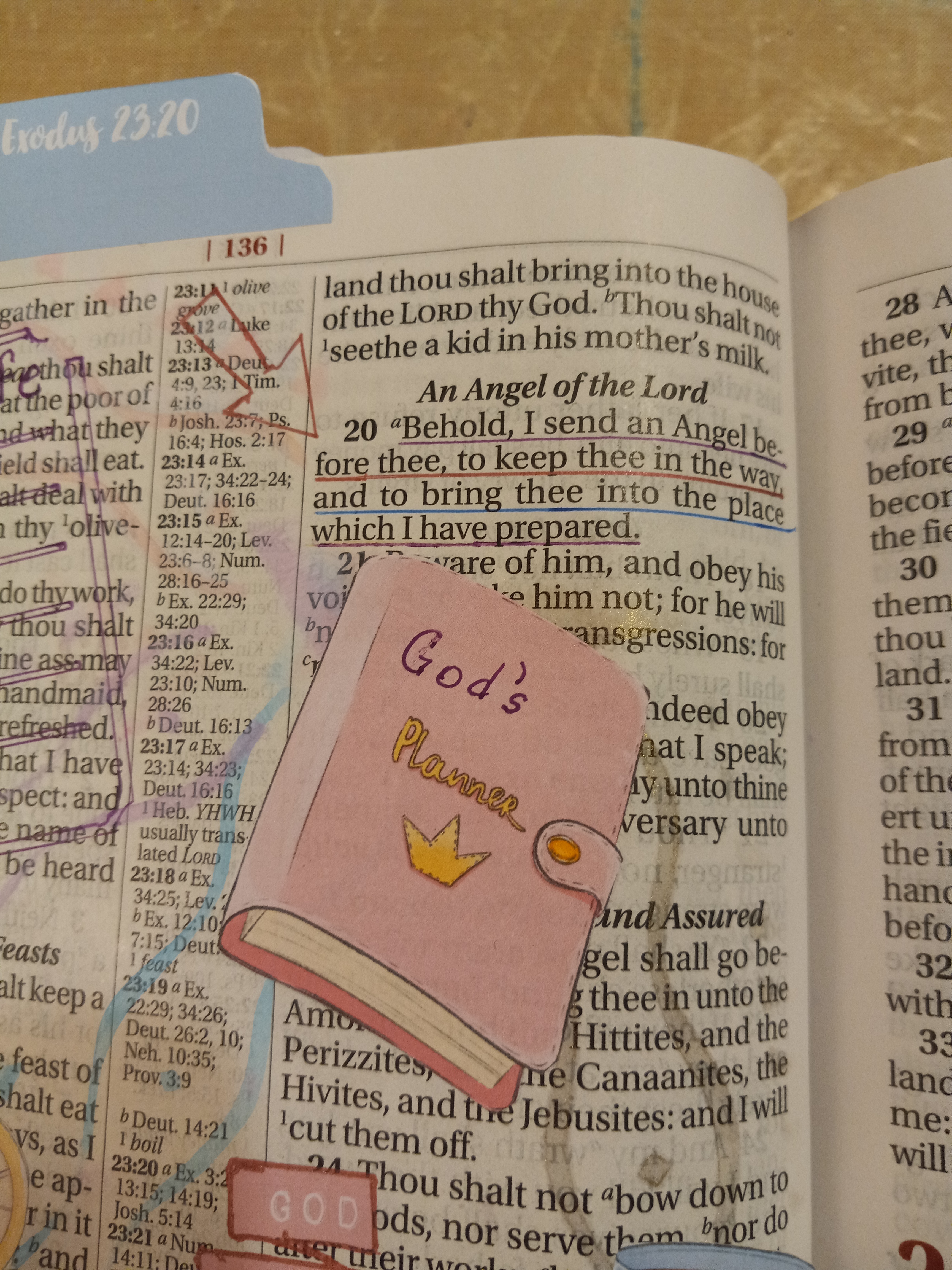 God told the Israelites that He was sending an Angel before them. To better understand who this Angel is, we also need to look at verse 21, “Beware of him, and obey his voice, provoke him not; for he will not pardon your transgressions: for my name is in him.” (KJV) I looked at a couple of commentaries and discovered that the Angel spoken of is Jesus. The Enduring Word website says, “This unique angel commanded obedience from Israel and had the right of judgment over the nation. Most of all, the name of God was in this angel (for My name is in Him).” So, Jesus is going before them to prepare the way for them to enter the Promised Land, and they are to obey Him.
