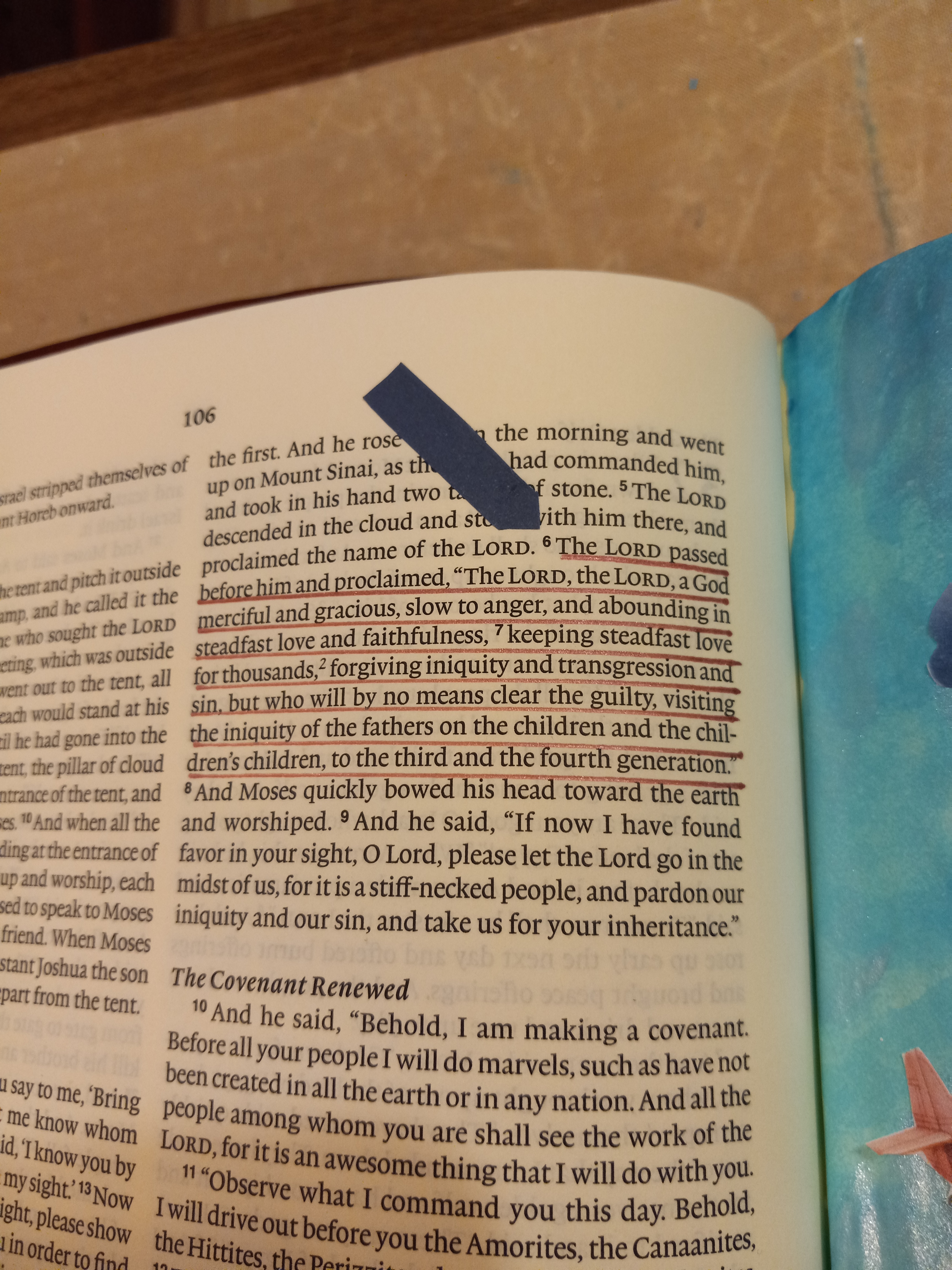 How do we usually view or understand love? In today’s world, many believe that love is a feeling, but the Bible tells us that God IS love (1 John 4:8), and so if love is a feeling, then God could not BE love because He is not a feeling, He is a person, real and living. Love is an action, not just a feeling. We must choose to love. God showed that to His children at Mount Sinai when they disobeyed by building the golden calf to worship while Moses was on the mountain receiving God’s law. Moses became angry with the people and broke the tablets that had God’s law written on them and went back up the mountain to receive a new set of tablets so that the people could learn God’s law. God describes Himself to Moses, “The Lord passed before him and proclaimed, ‘The Lord, the Lord, a God merciful and gracious, slow to anger, and abounding in steadfast love and faithfulness, keeping steadfast love for thousands, forgiving iniquity and transgression and sin, but who will by no means clear the guilty, visiting the iniquity of the fathers on the children and the children’s children, to the third and the fourth generation.’” (Exodus 34:6-7 ESV)