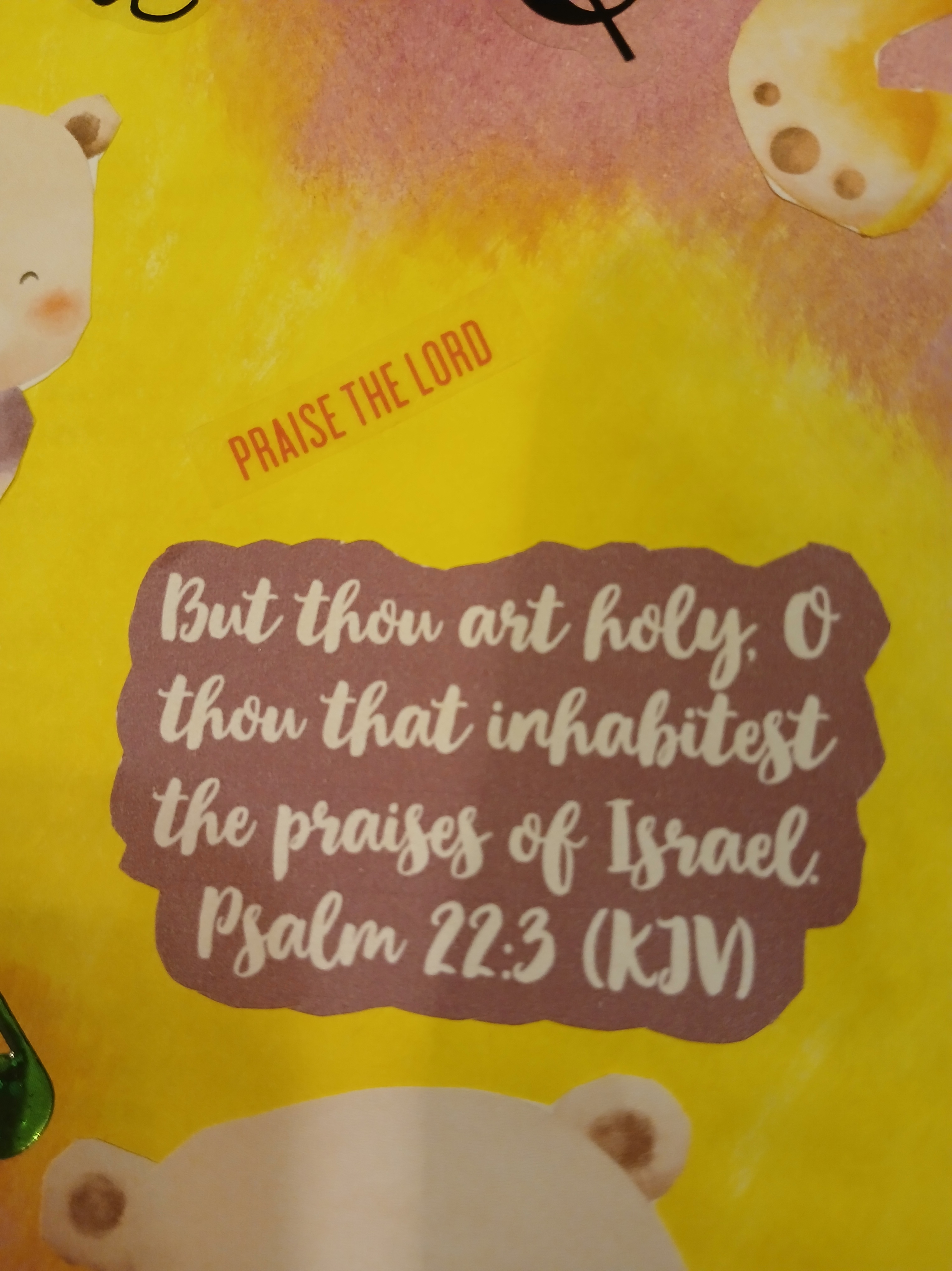 As we grow in our walk with the Lord, we cannot help but offer praise to Him for all that He has done. Today’s Bible Journaling verse says, “Yet you are holy, enthroned on the praises of Israel.” (Psalm 22:3 ESV) The King James Version says, “But thou art holy, O thou that inhabitest the praises of Israel.” God INHABITS our praise; He lives in our praise!