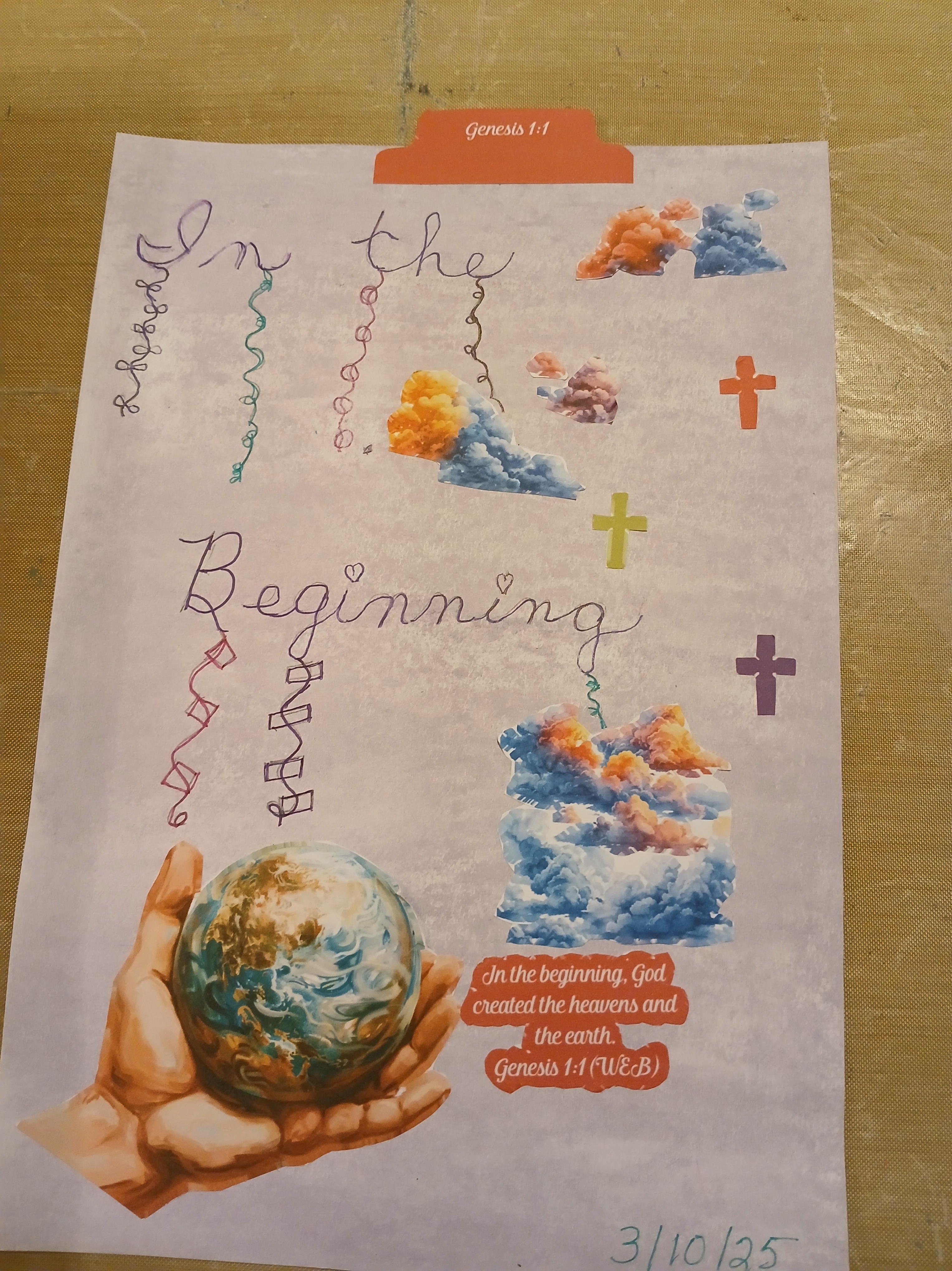 We are going to be in the book of Genesis for a while. The Merriam-Webster Dictionary defines “Genesis” as the origin or coming into being of something. Our Bible Journaling Scripture today is Genesis 1:1, “In the beginning, God created the heavens and the earth.” (ESV) Genesis is the first book of the Bible. It was written by Moses and is part of the Torah. The Torah is defined as “The heart of religious Jewish faith and law, the Torah technically refers to the first five books of the Hebrew Bible (or Tanakh).” (Rebooting Jewish Life)